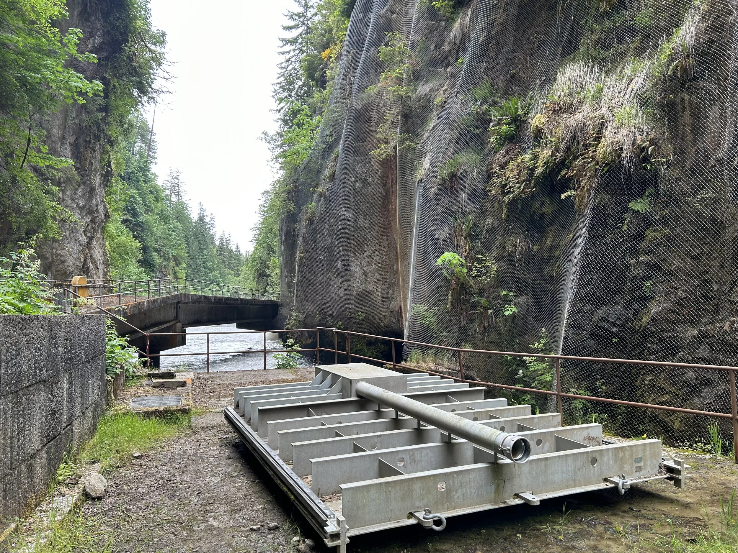 The Mud Mountain Dam Stop Logs Project was an Army Corps of Engineering funded job in Enumclaw, WA. The Corp needed a crane with a higher capacity to move their stop logs around for cleaning and setting. KWH hired a crane company to crawl down the steep switchbacks at Mud Mountain to perform the work.
